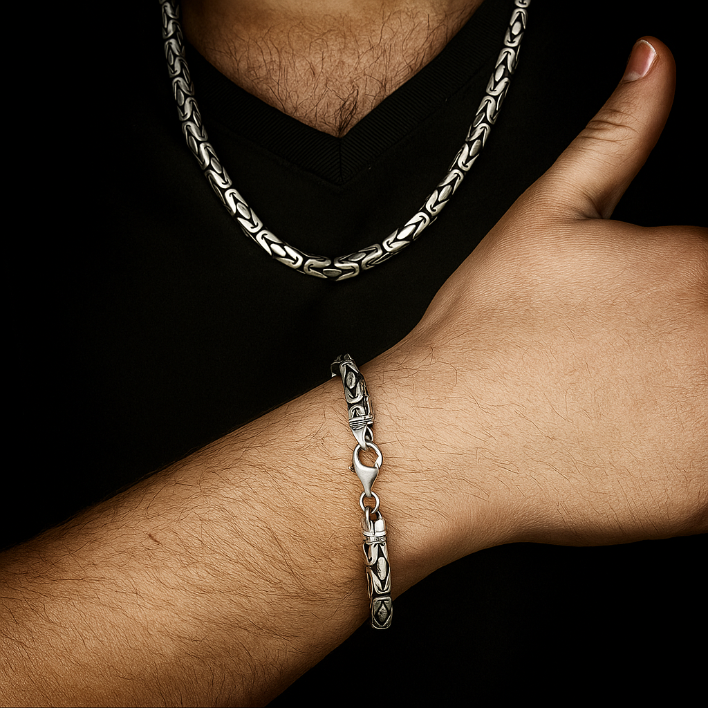 925 Ayar Gümüş Kral Zincir Kolye Bileklik Seti (5,8mm-55cm)