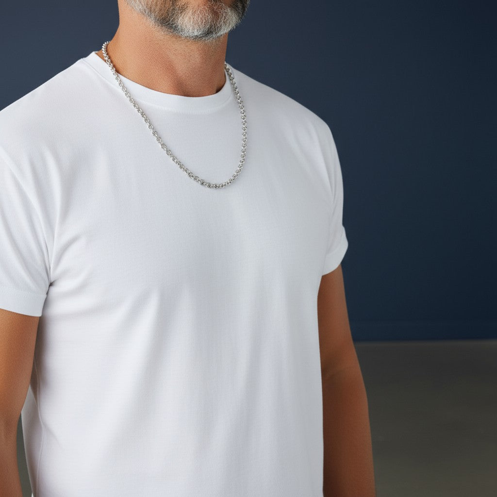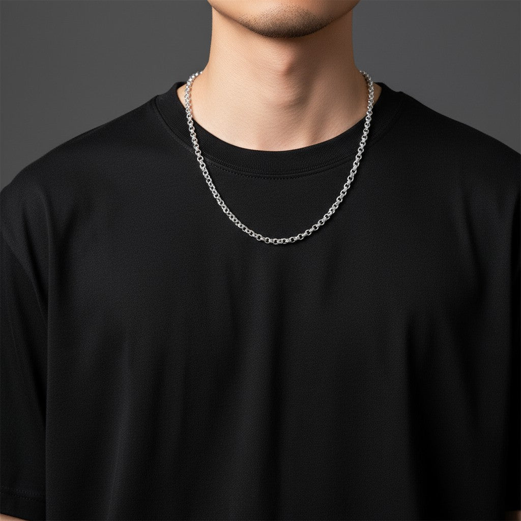 55 cm lange, moderne und stilvolle Doch-Ring-Kette aus 925er Sterlingsilber für Herren.