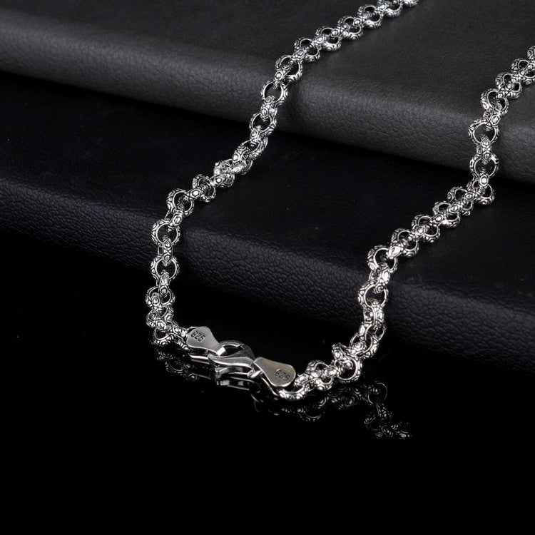 Özgün el işçiliğiyle tasarlanmış 55 cm uzunluğunda, 925 ayar gümüş erkek zincir kolye.