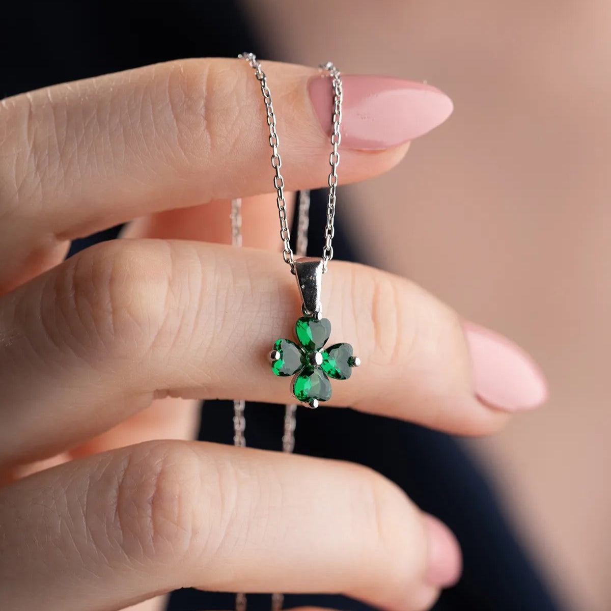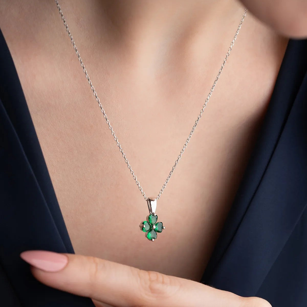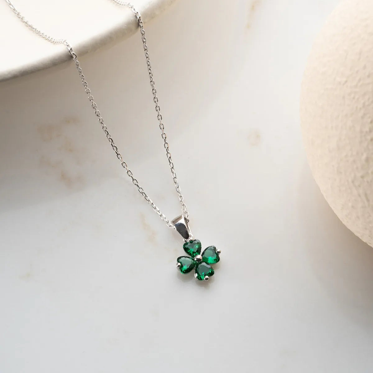 925 Ayar Gümüş Yeşil Yonca Kolye