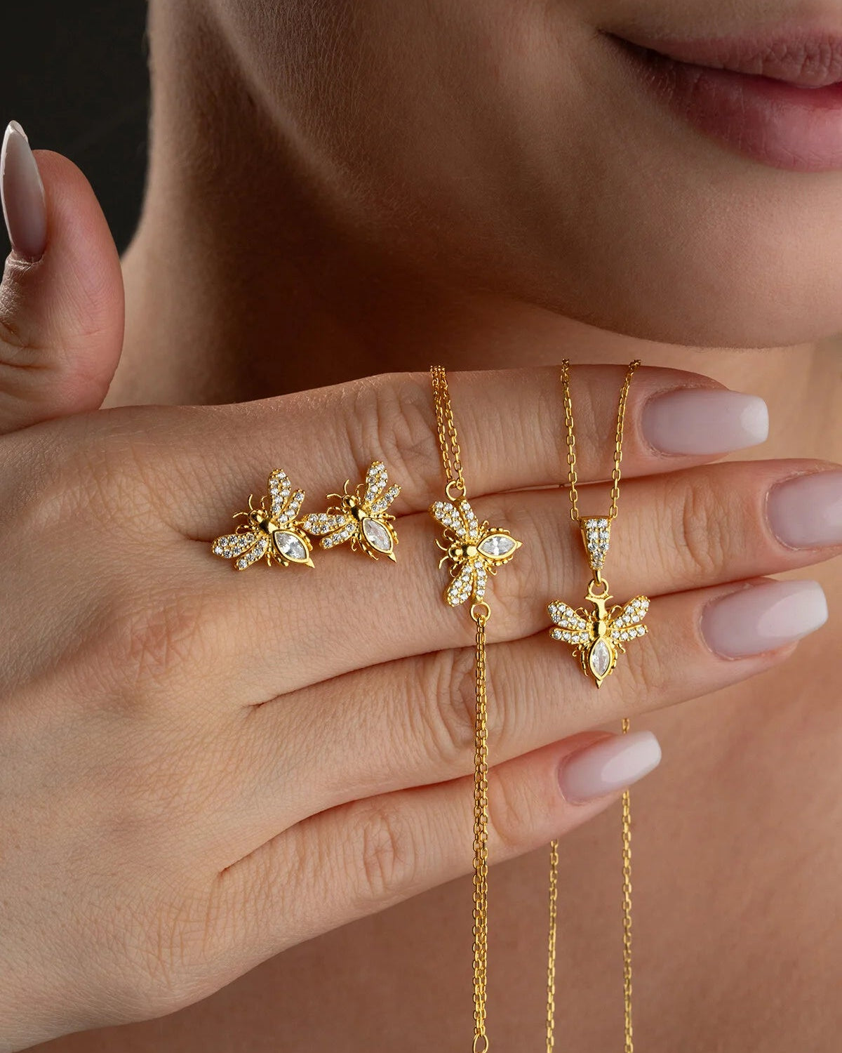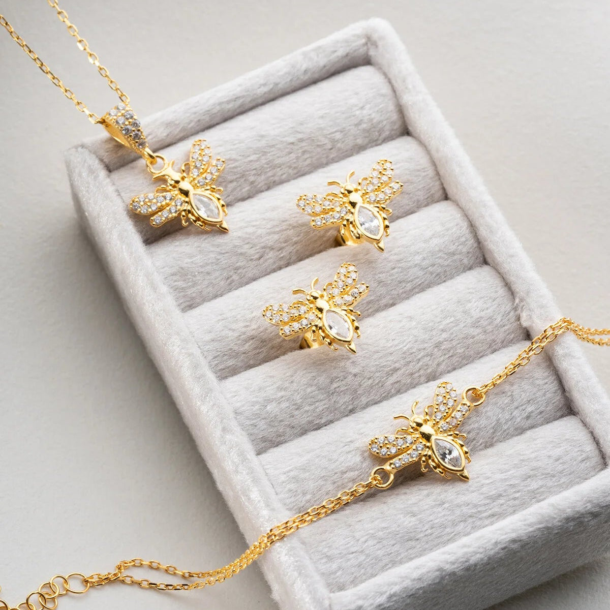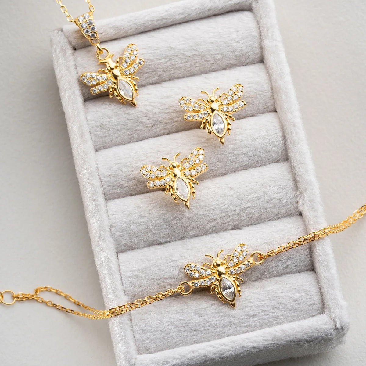 "Bahar Kraliçesi" 925 Ayar Altın Kaplama Arı Set