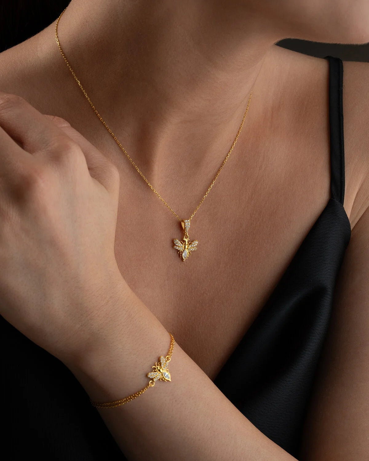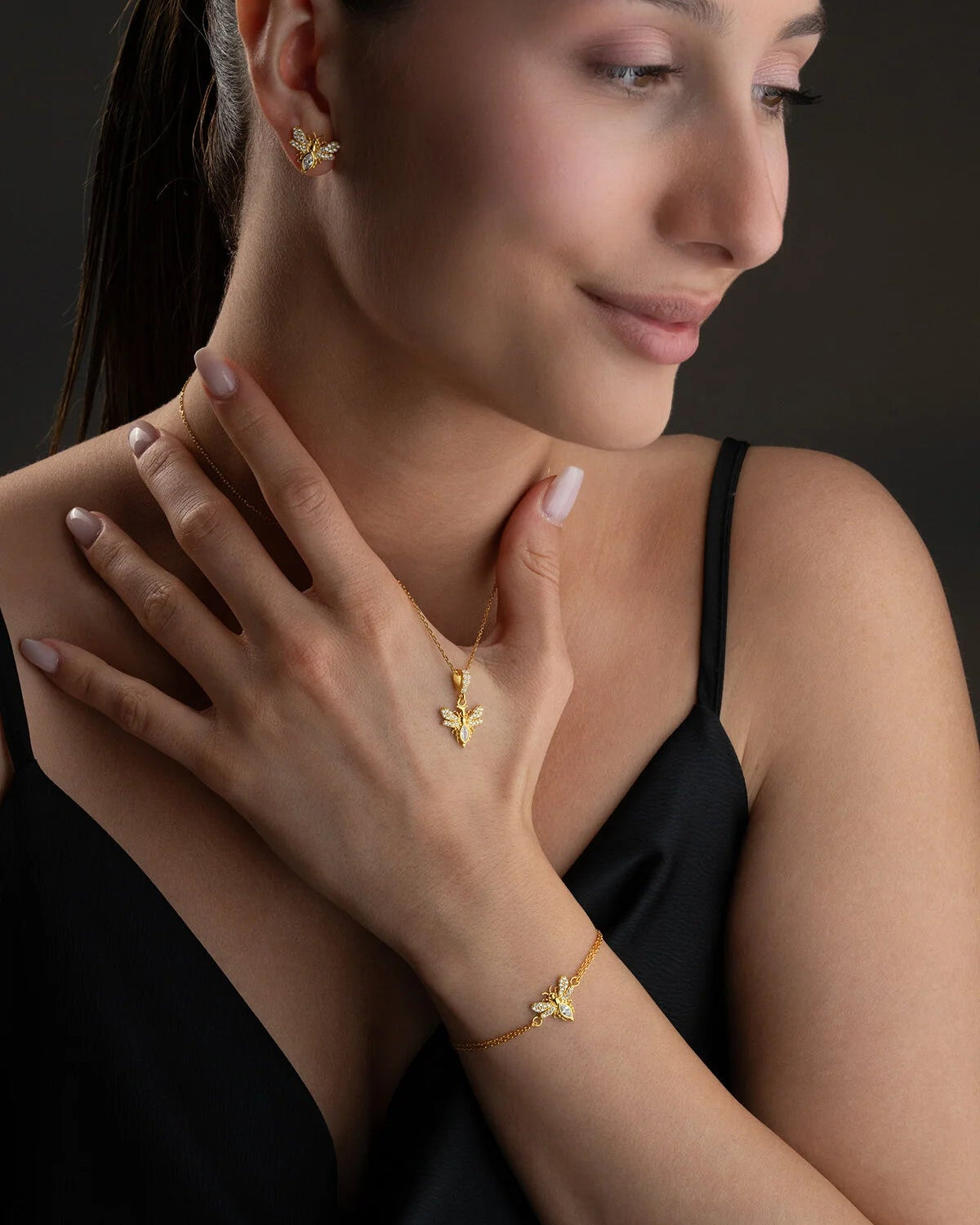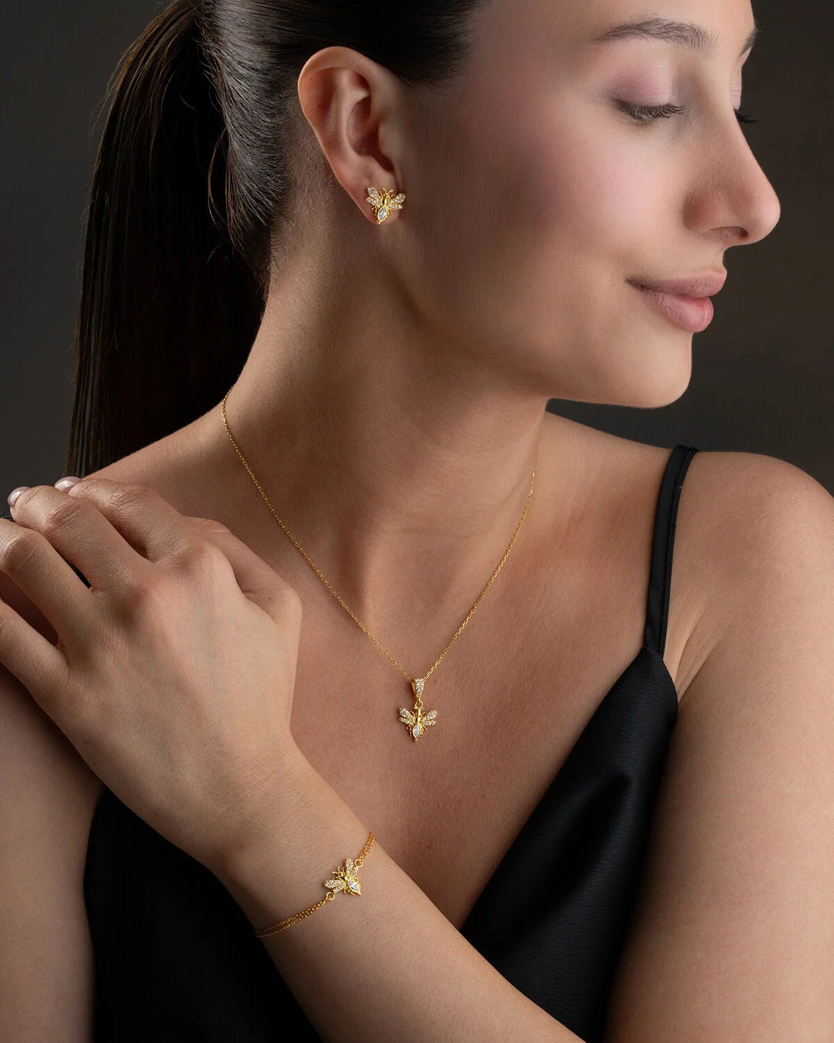 "Bahar Kraliçesi" 925 Ayar Altın Kaplama Arı Set