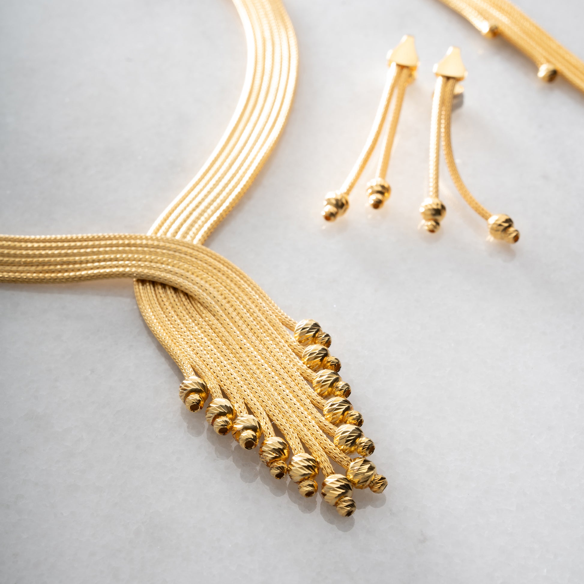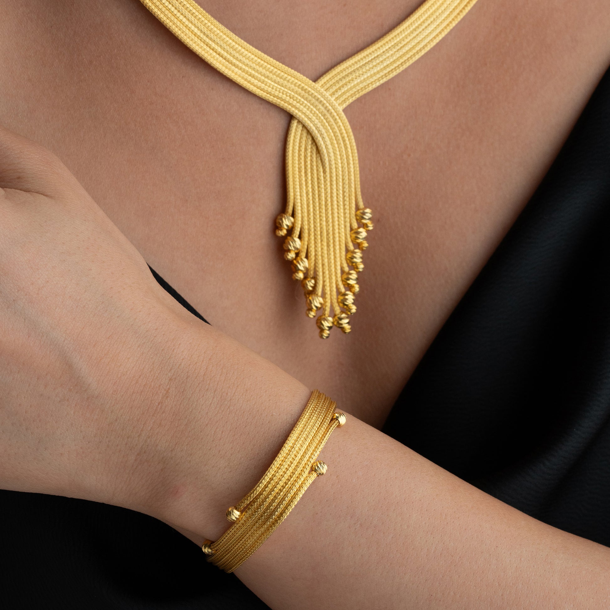 Golden Cascade 925 Ayar Gümüş Örgü Takı Seti