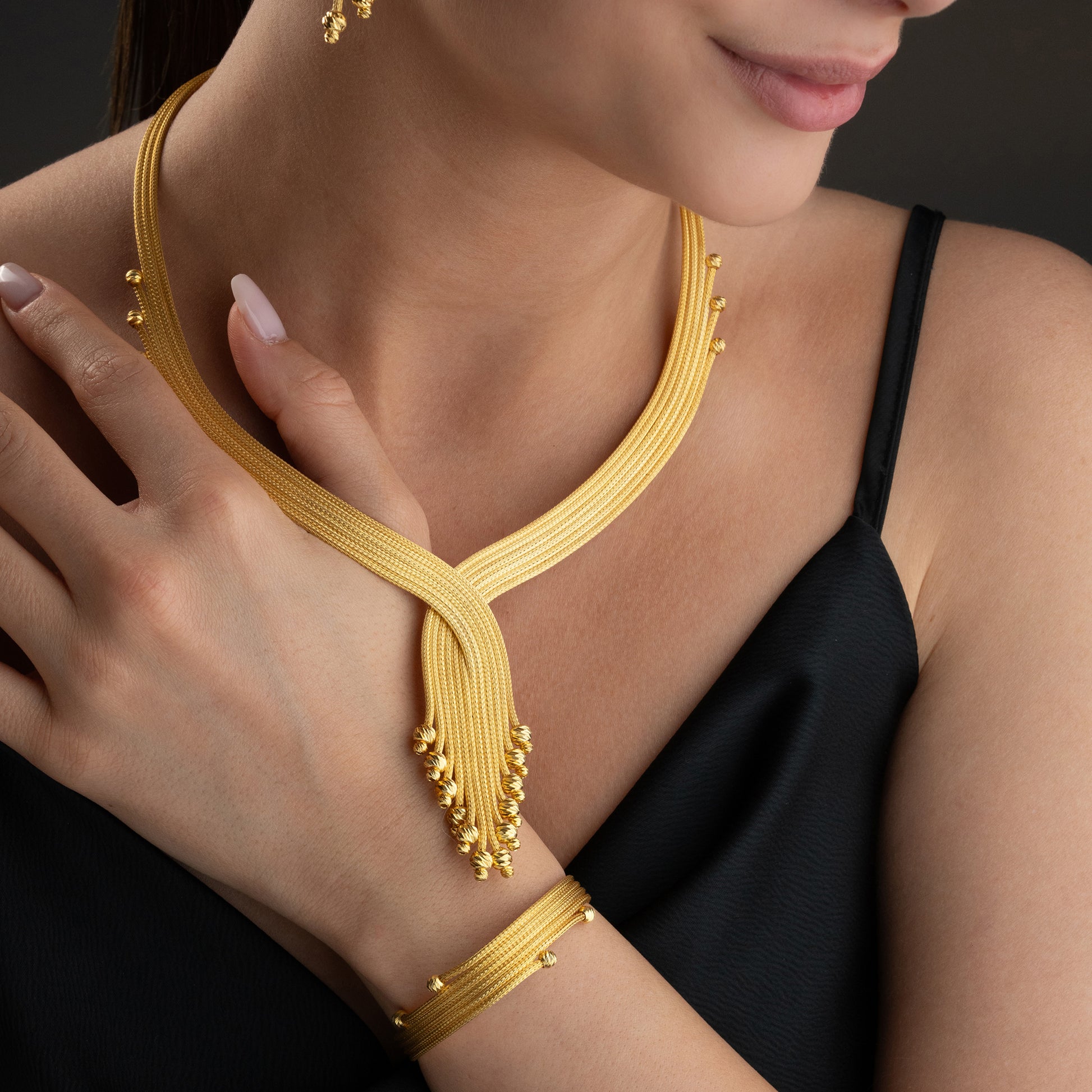 Şık ve gösterişli tasarımıyla zarafeti boynunuzda ve bileğinizde hissettiren özel bir set.
