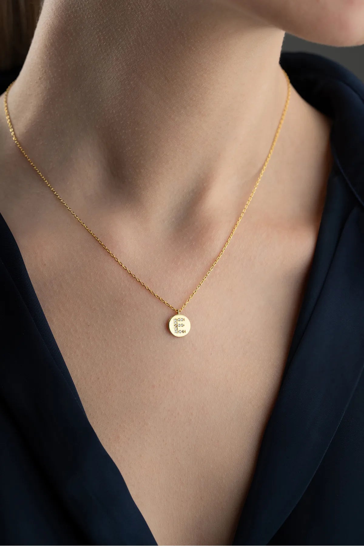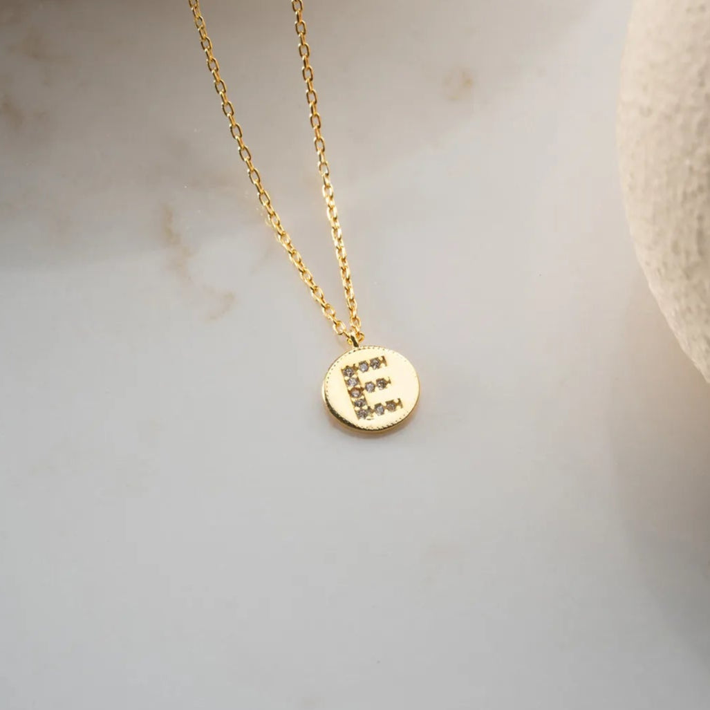 Runde Plakettenkette mit personalisiertem Buchstaben und Zirkonbesatz aus 925er Silber