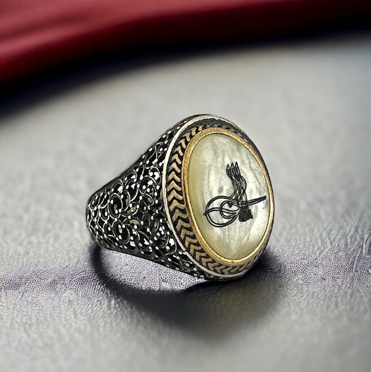 Herrenring 925er Silber mit Perlmutt - OUTLET
