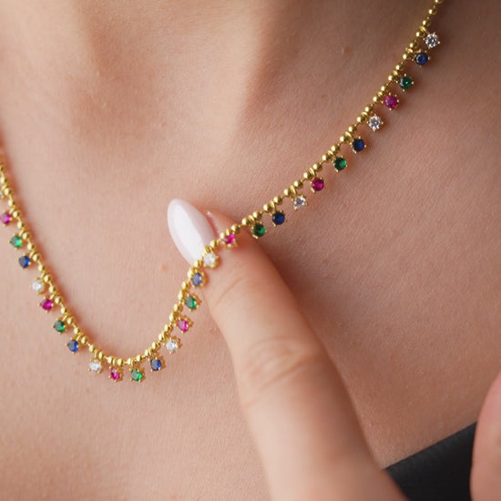 Serenay Halskette – Mit bunten Steinen – 925 Sterling Silber