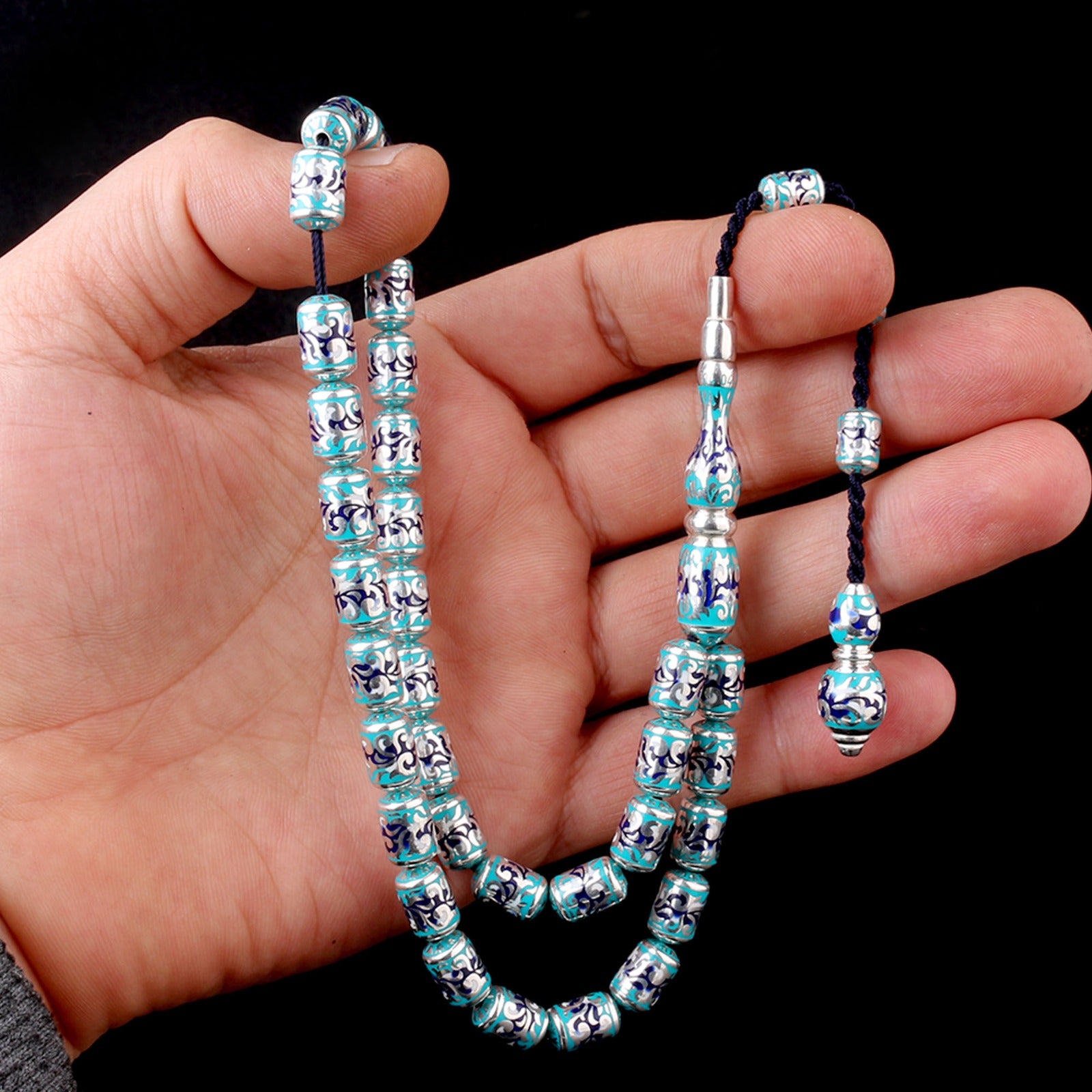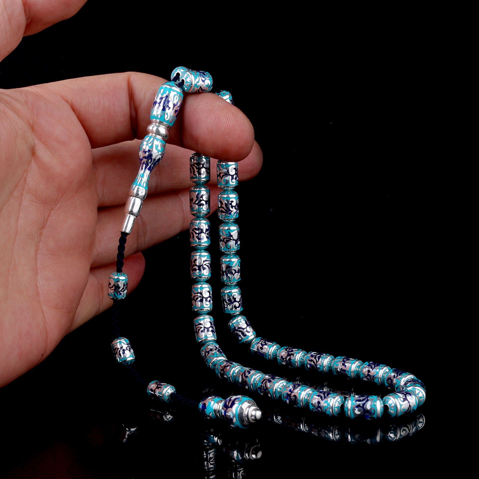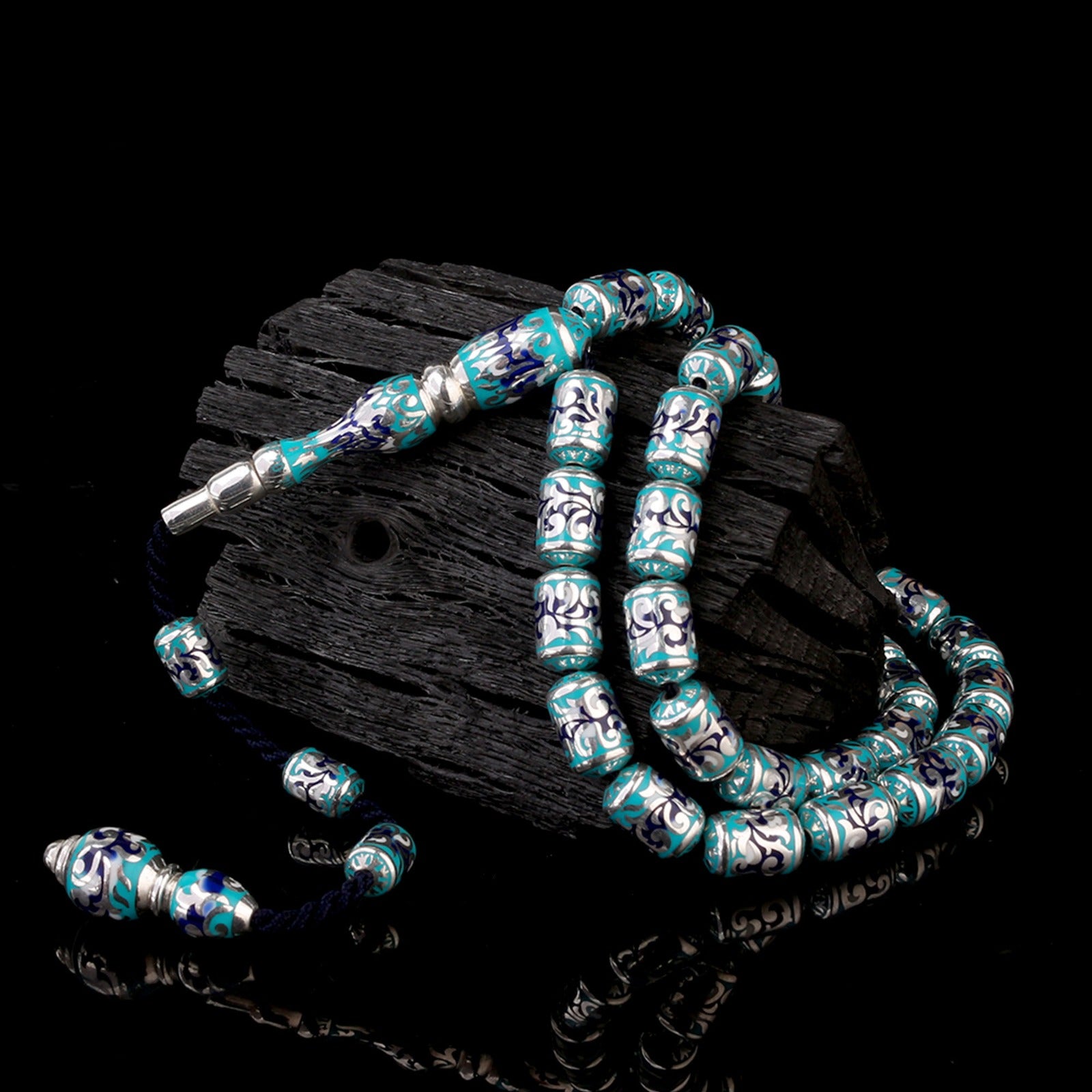 Tesbih aus 925er Silber mit türkisfarbener Emaille