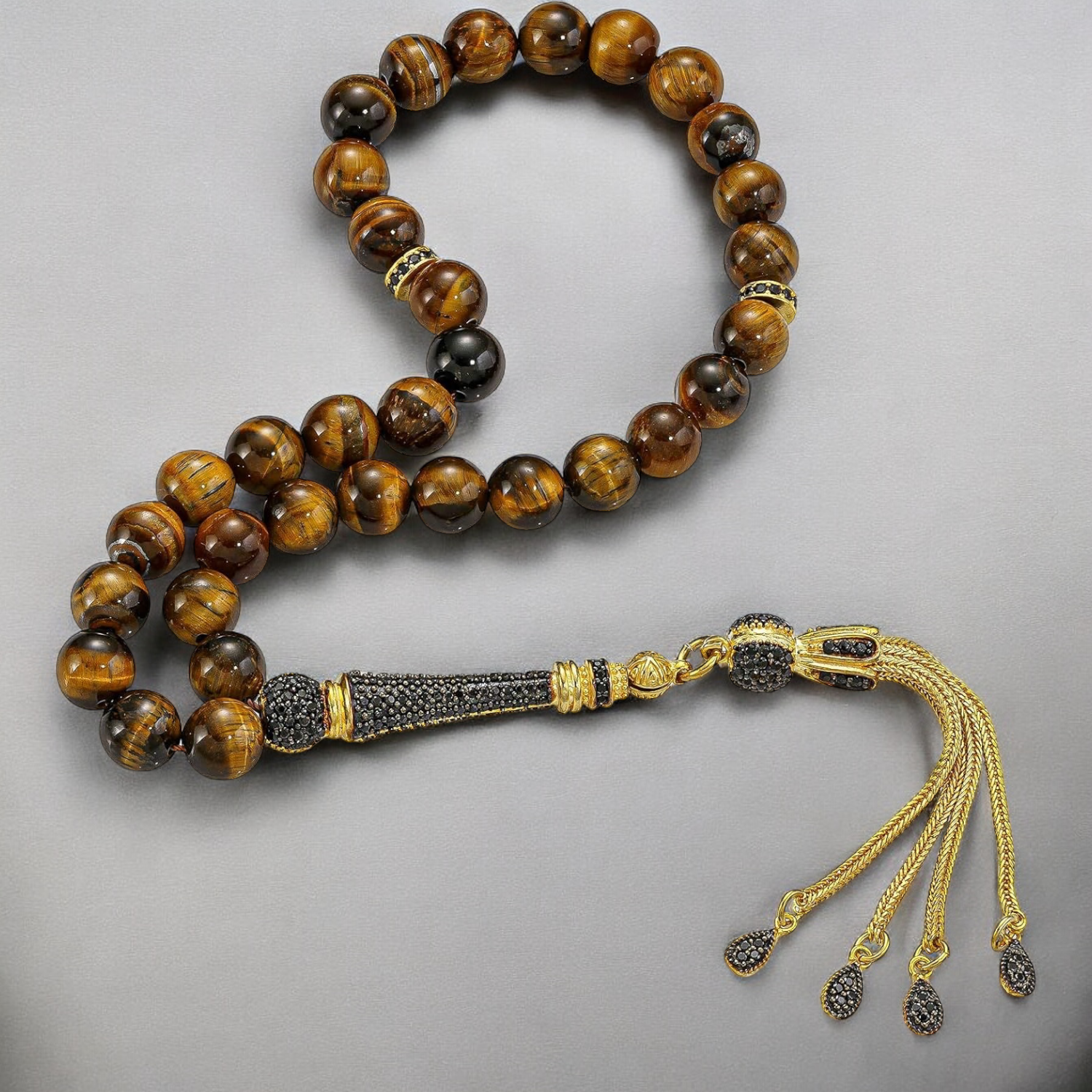 8x8 mm tane ebadında, 17 cm imameye kadar uzunlukta, toplamda 24 cm olan, zirkon taşlı gümüş püsküllü, şık ve enerjik kaplangözü taşı tesbih. Bilek boy tasarımıyla zarif bir tercih.