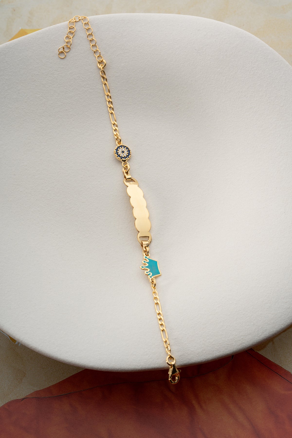 Minik prense özel isim yazılabilen nazar boncuklu ve taç detaylı çocuk bilekliği.