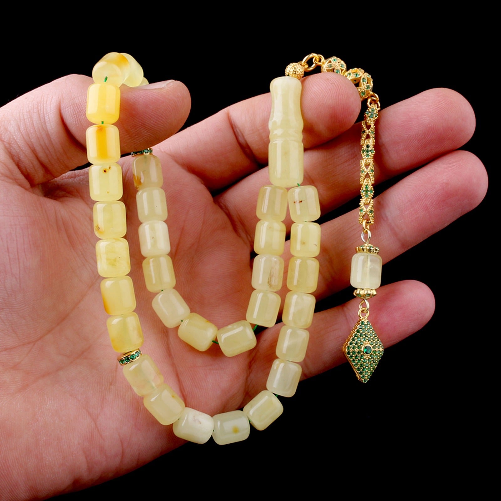 Mat Sarı Kapsül Kesim Damla Kehribar Tesbih