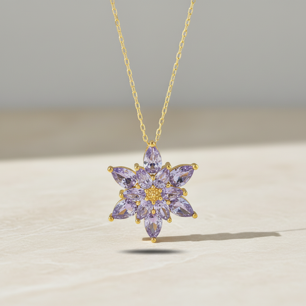 A symbol of purity and rebirth lotus flower, shines brightly even in the darkest waters, guiding the way. This elegant necklace reflects the pure and powerful spirit of the lotus flower. 925 sterling silver And sparkling zircon stones Designed with. With its elegance and meaningful design, it is the perfect accessory for both daily use and special moments.