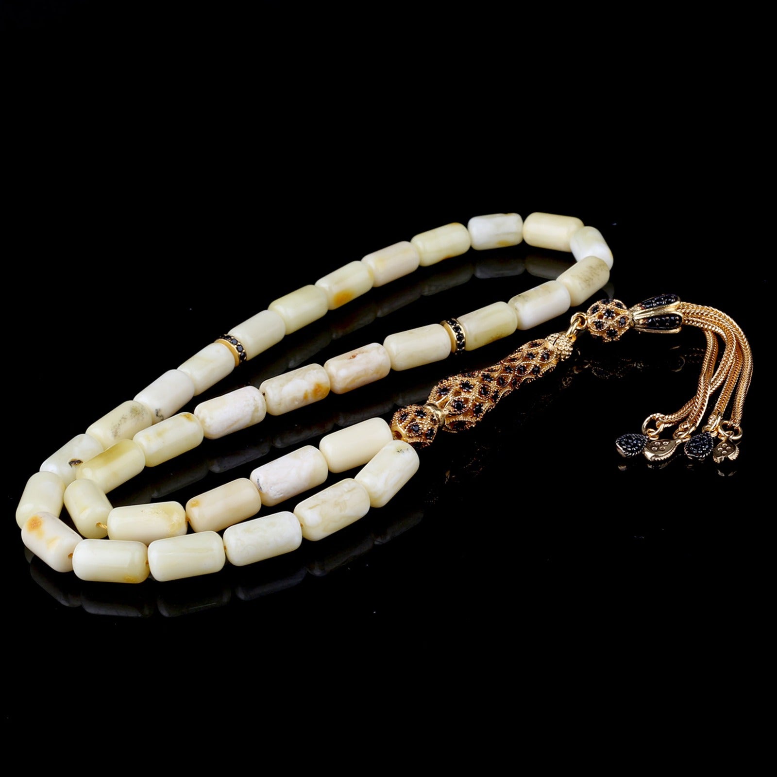Zirkon setli gümüş püsküllü, orijinal ve sertifikalı sarı kapsül kesim damla kehribar tesbih.