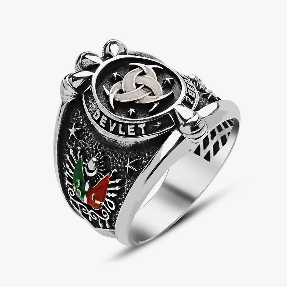 Bozkurt Göktürkçe Motifli 925 Ayar Gümüş Yüzük
