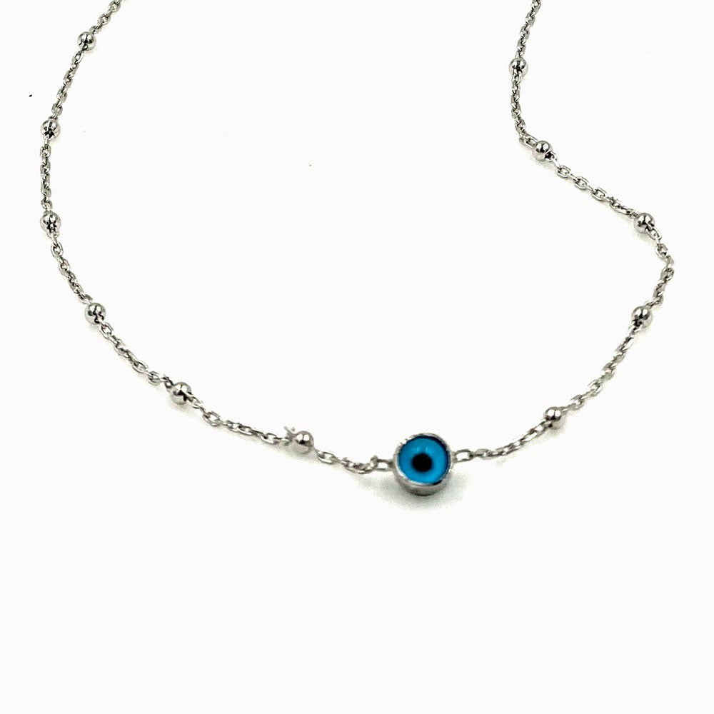 Collier en argent avec œil en verre double face et mauvais œil