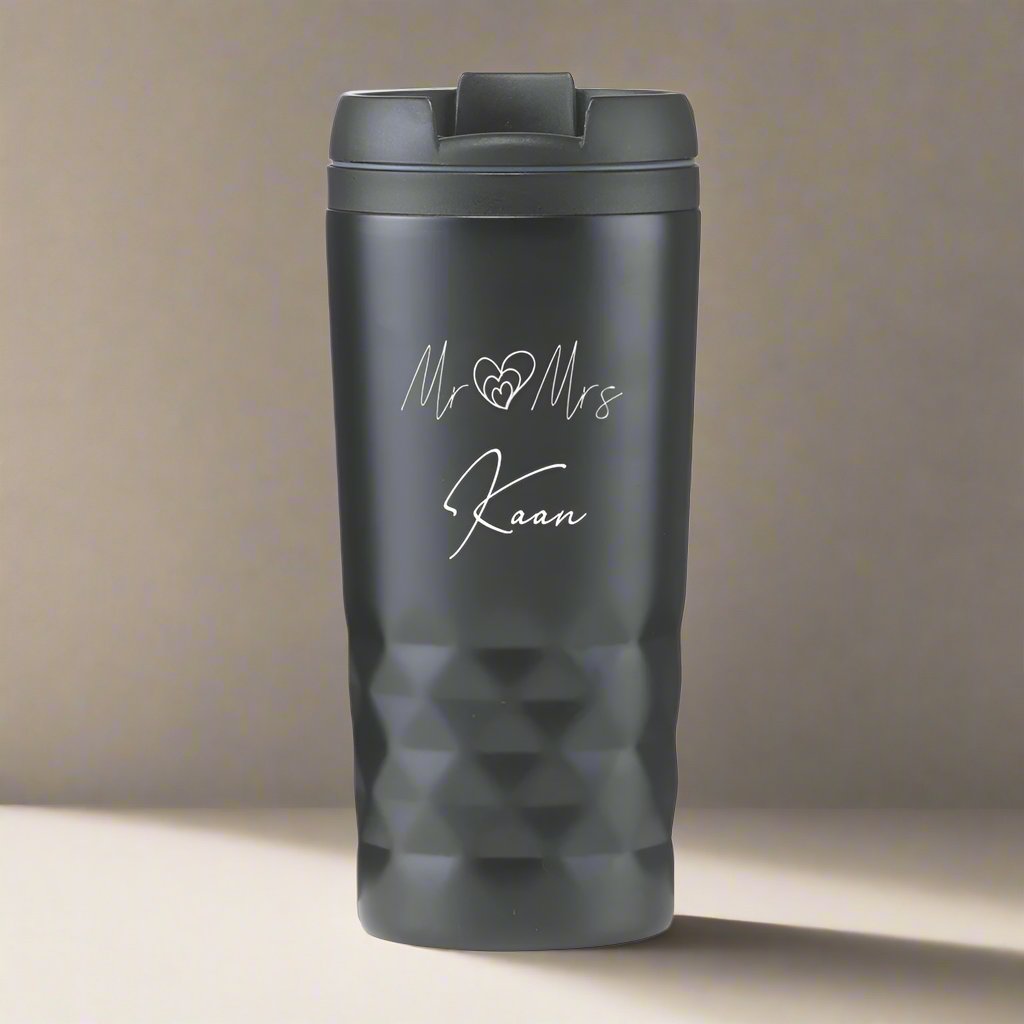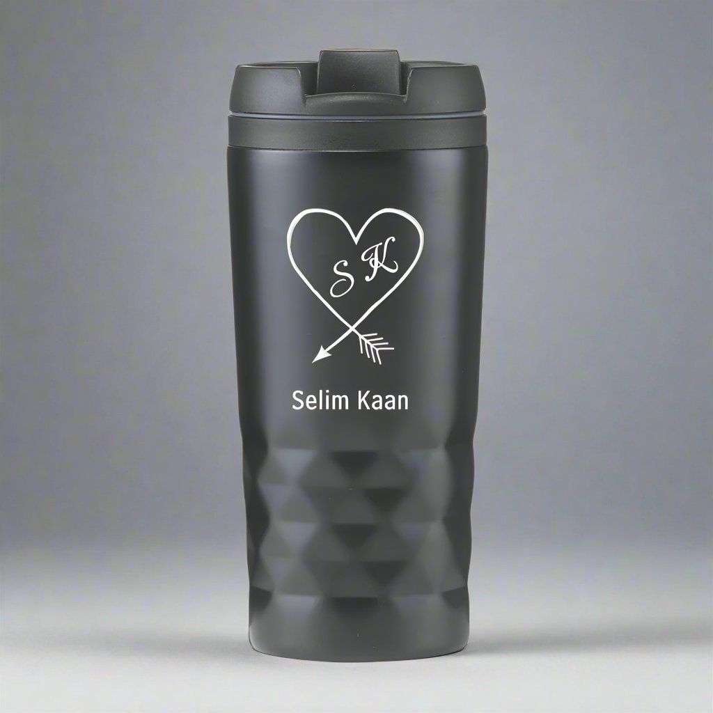 Tasse thermos en acier personnalisée avec nom. Le nom ou le logo peut être réalisé par gravure laser et sa couleur ne s'estompera pas et ne s'effacera pas.