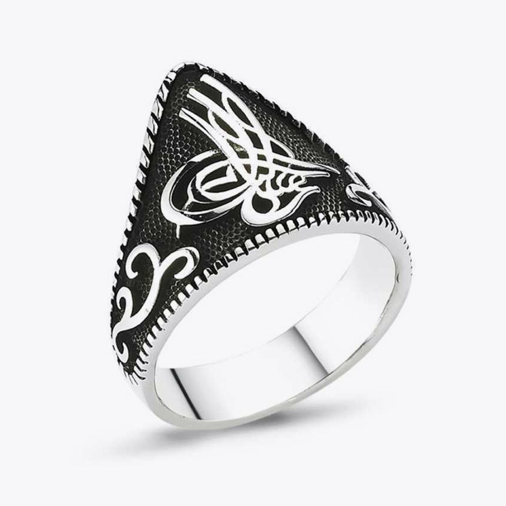 Tuğra motifli 925 ayar gümüş erkek yüzük.