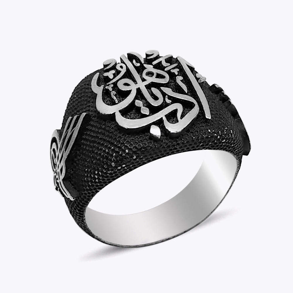 Edeb Yahu Yazılı Tuğra detaylı, anlam yüklü 925 ayar gümüş erkek yüzük.