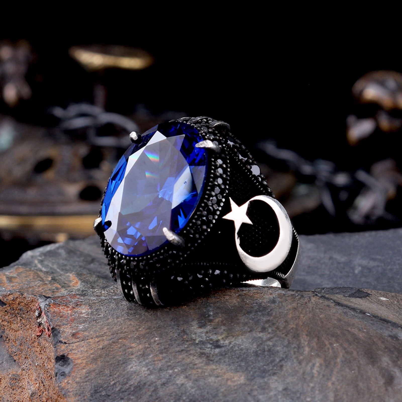 925 Ayar Gümüş Lacivert Zirkon Taşlı Ayyıldız Model Yüzük