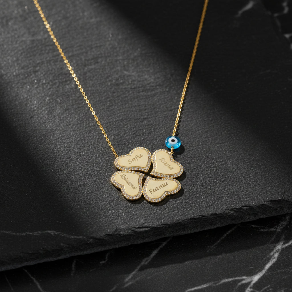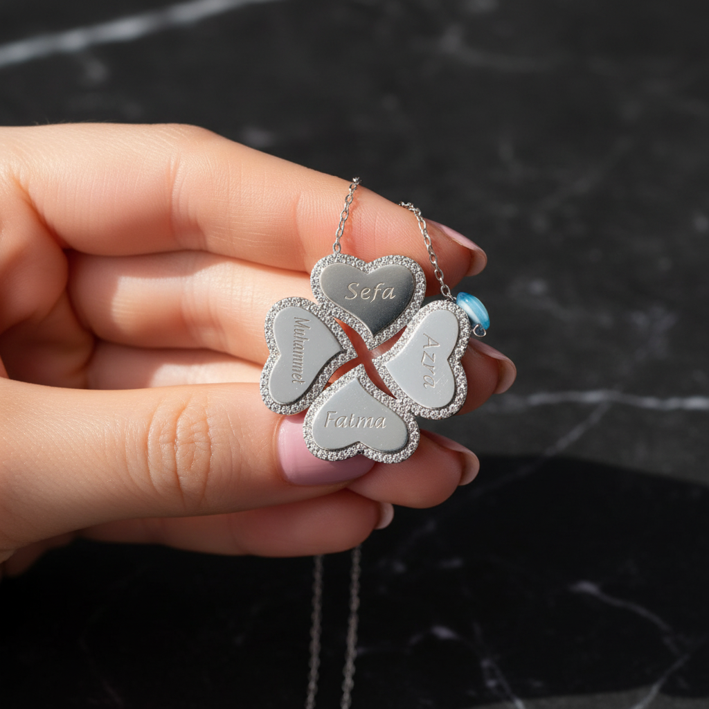 ✓ Çocuk isimleri yazılabilir yonca kolye