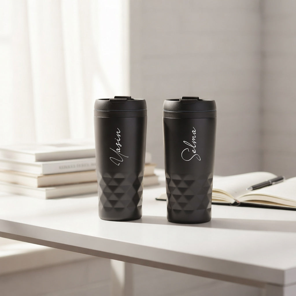Çiftlere Özel El Yazılı İsimli RVS Siyah Termos Bardak