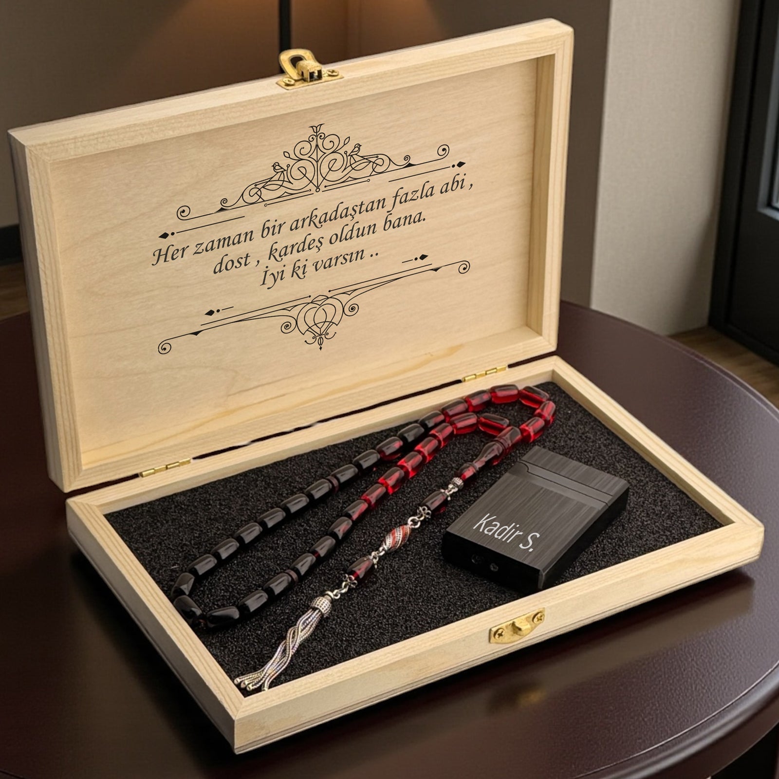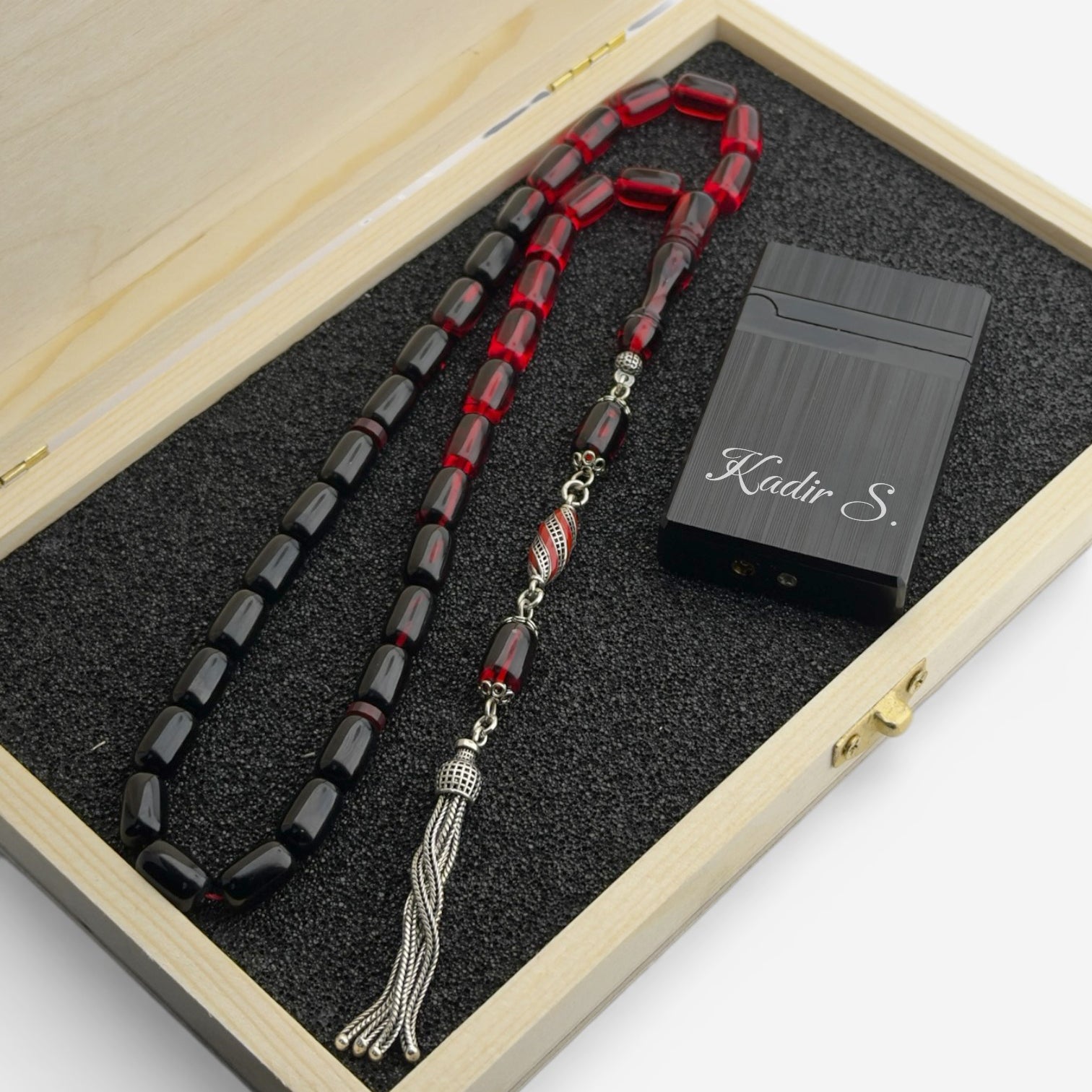 Kişiye Özel Ateş Kehribar Tesbih & Çakmak Hediye Seti